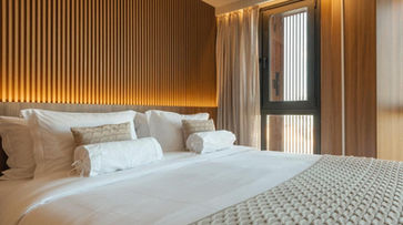 As acomodações, com decoração que remete ao charme europeu da região, oferecem ambiente espaçoso, camas confortáveis e acabamento refinado, perfeitos para quem busca descanso após explorar Capivari, trilhas e mirantes em Campos do Jordão.